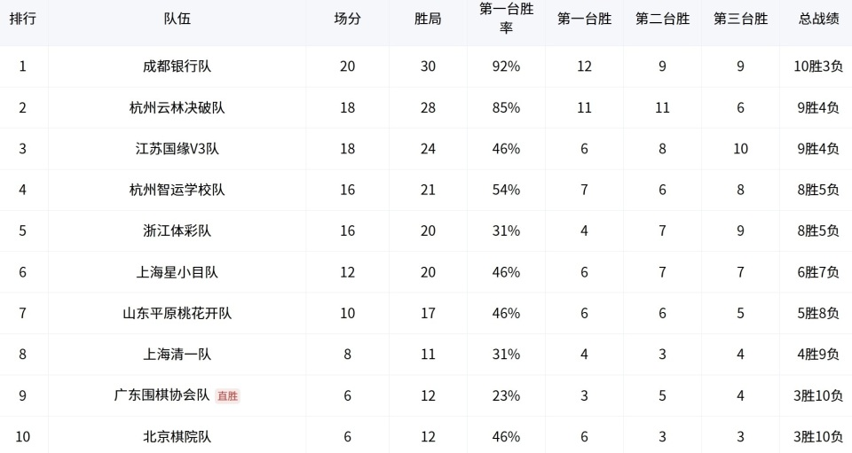 2025三国赤壁古战场杯中国围棋甲级联赛第八轮比赛时间:2025-10-28(周二)贵州仁怀酱香队 VS 苏泊尔杭州队